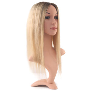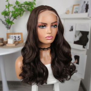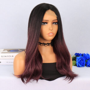 Su Dalgası Uzun Perçemsiz Fiber Sentetik Peruk – Kumral / Platin Ombreli